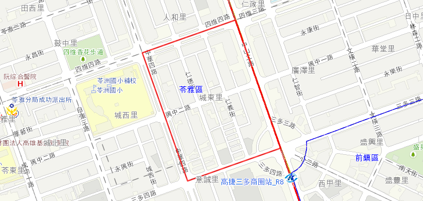 北至‥四維四路與人和里為界 南至‥三多四路與意誠里為界 東至‥中山二路與廣澤里為界 西至‥中華四路與城西里為界 |